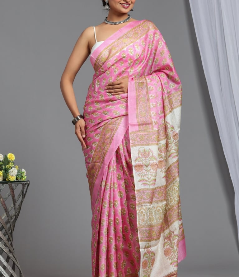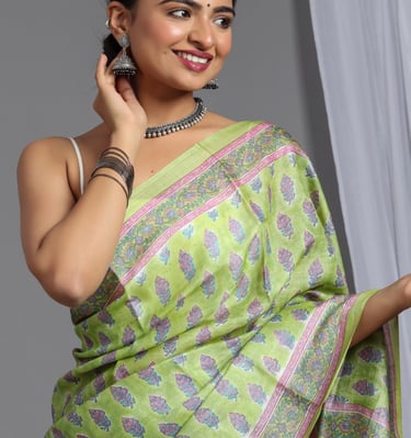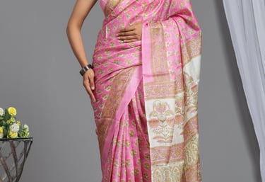 From soft cotton block-printed drapes to elegant hand-dyed designs, our sarees carry the charm of Sanganer’s centuries-old printing heritage.