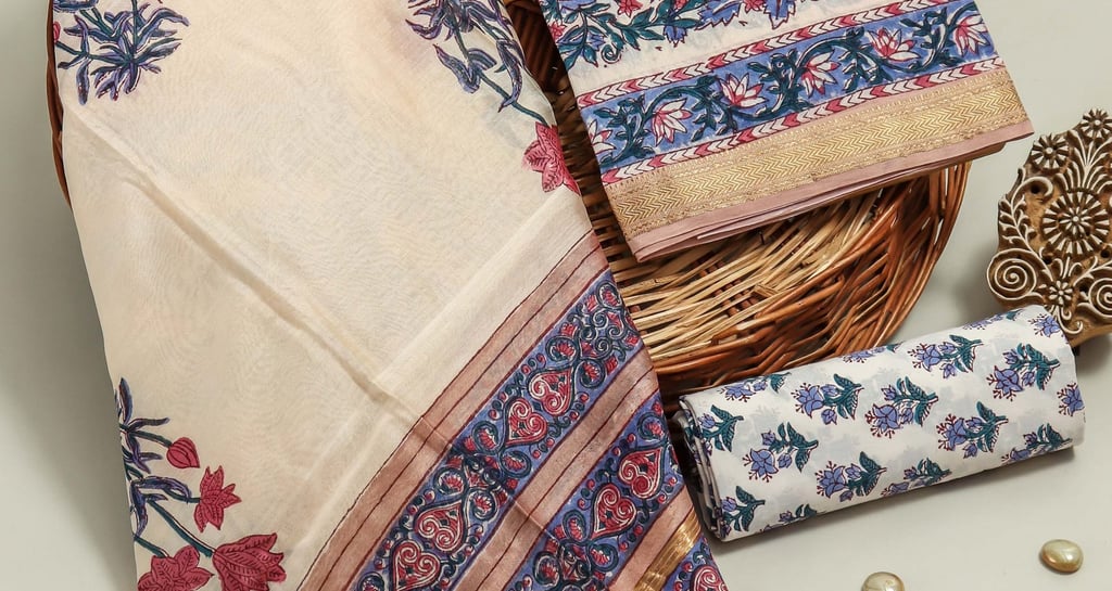 Handcrafted suit materials that blend everyday ease with timeless Jaipur artistry.